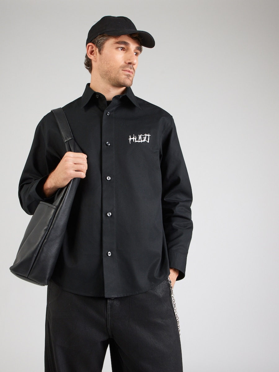 Рубашка на пуговицах Comfort fit HUGO Ebolt, черный