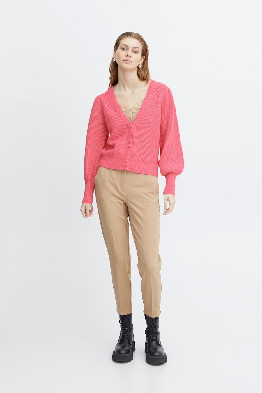Вязаный кардиган ICHI Dusty, малиновый