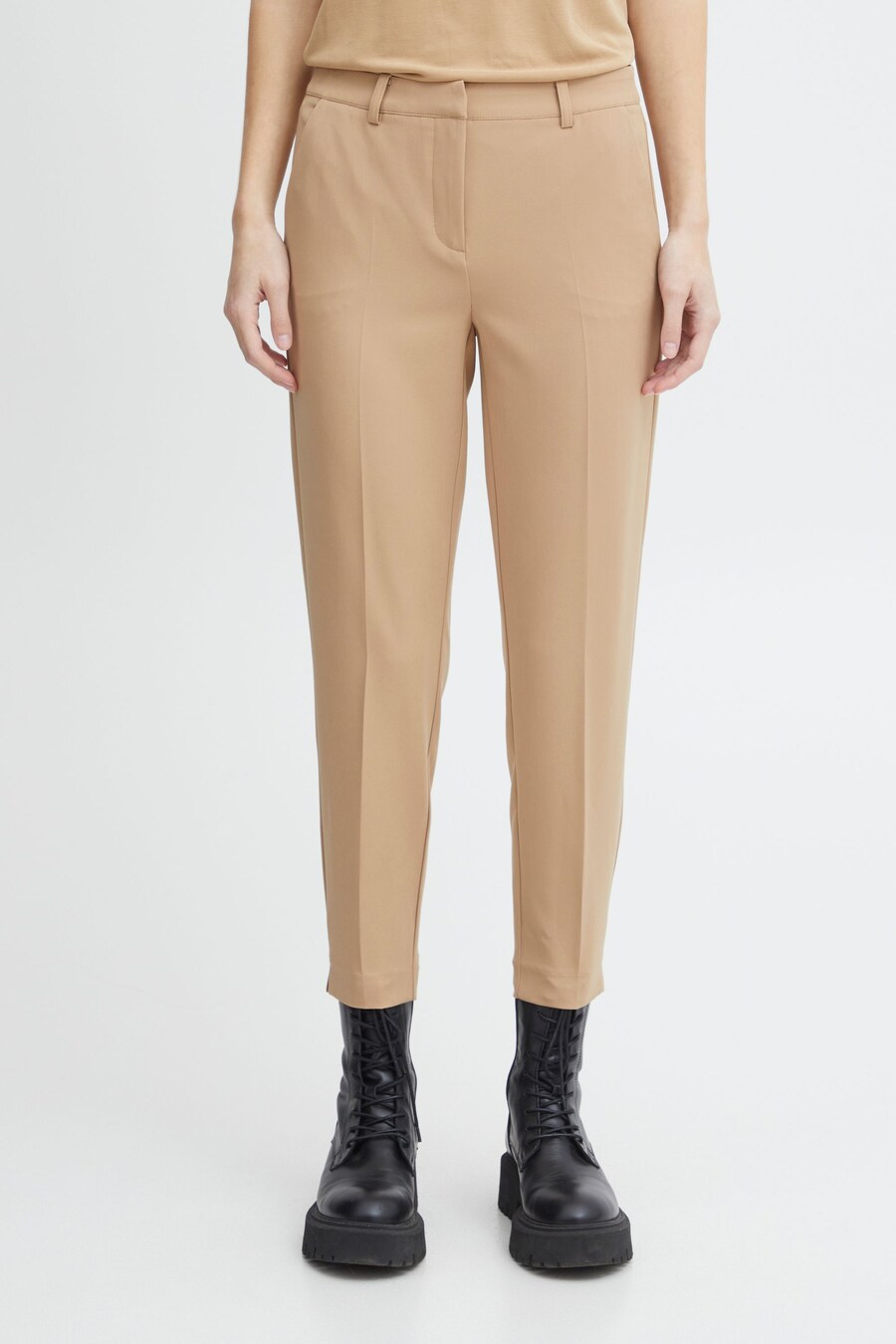Узкие брюки со складками ICHI Lexi, карамель