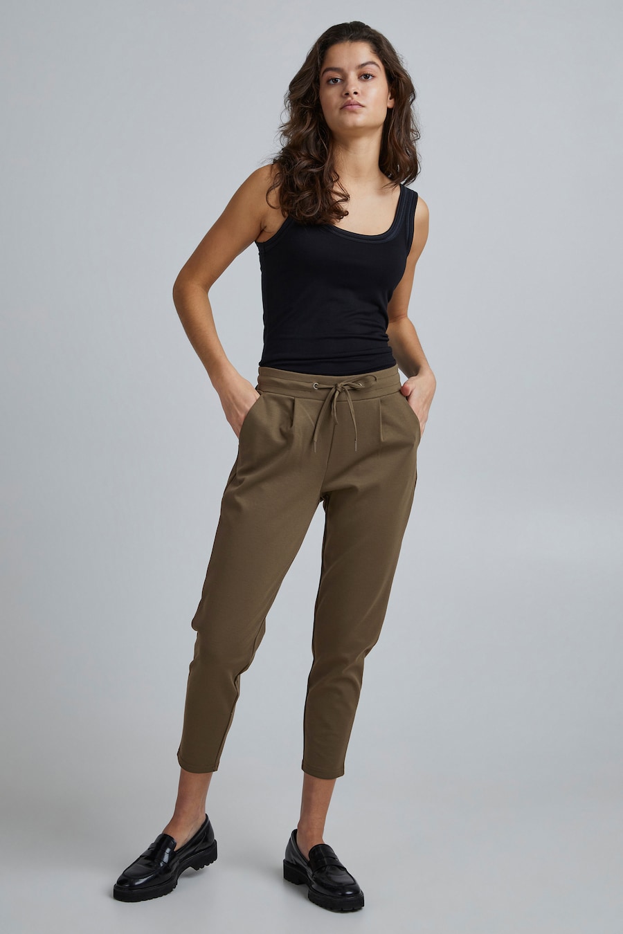 Зауженные брюки со складками спереди ICHI Kate, оливковый