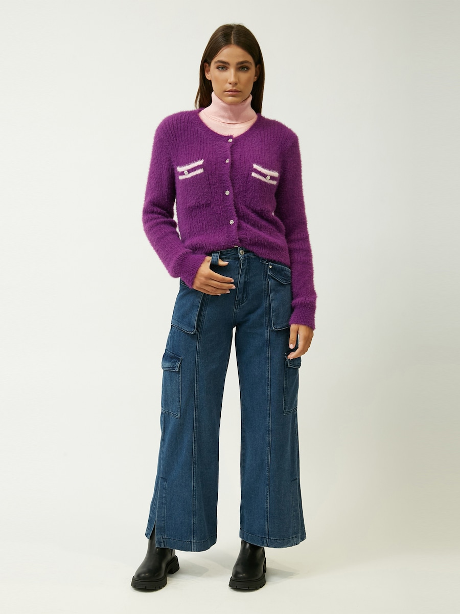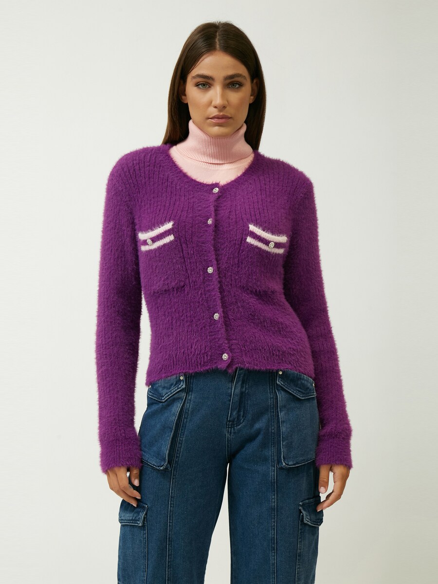 Вязаный кардиган Influencer Fluffly, фиолетовый
