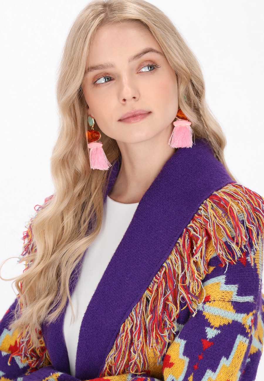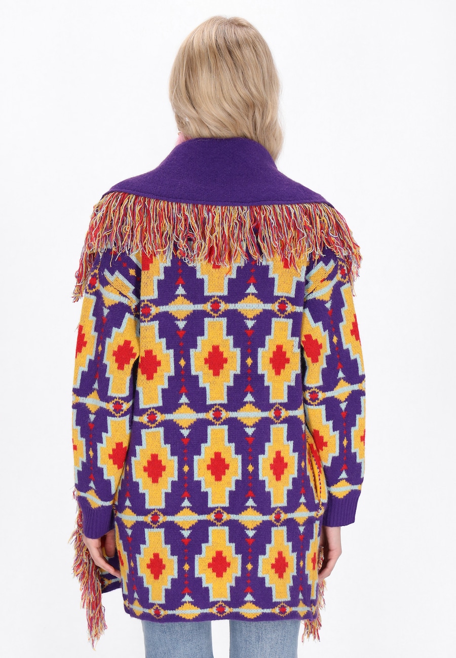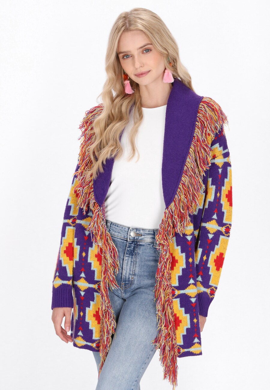 Вязаный кардиган IZIA, желтый/фиолетовый
