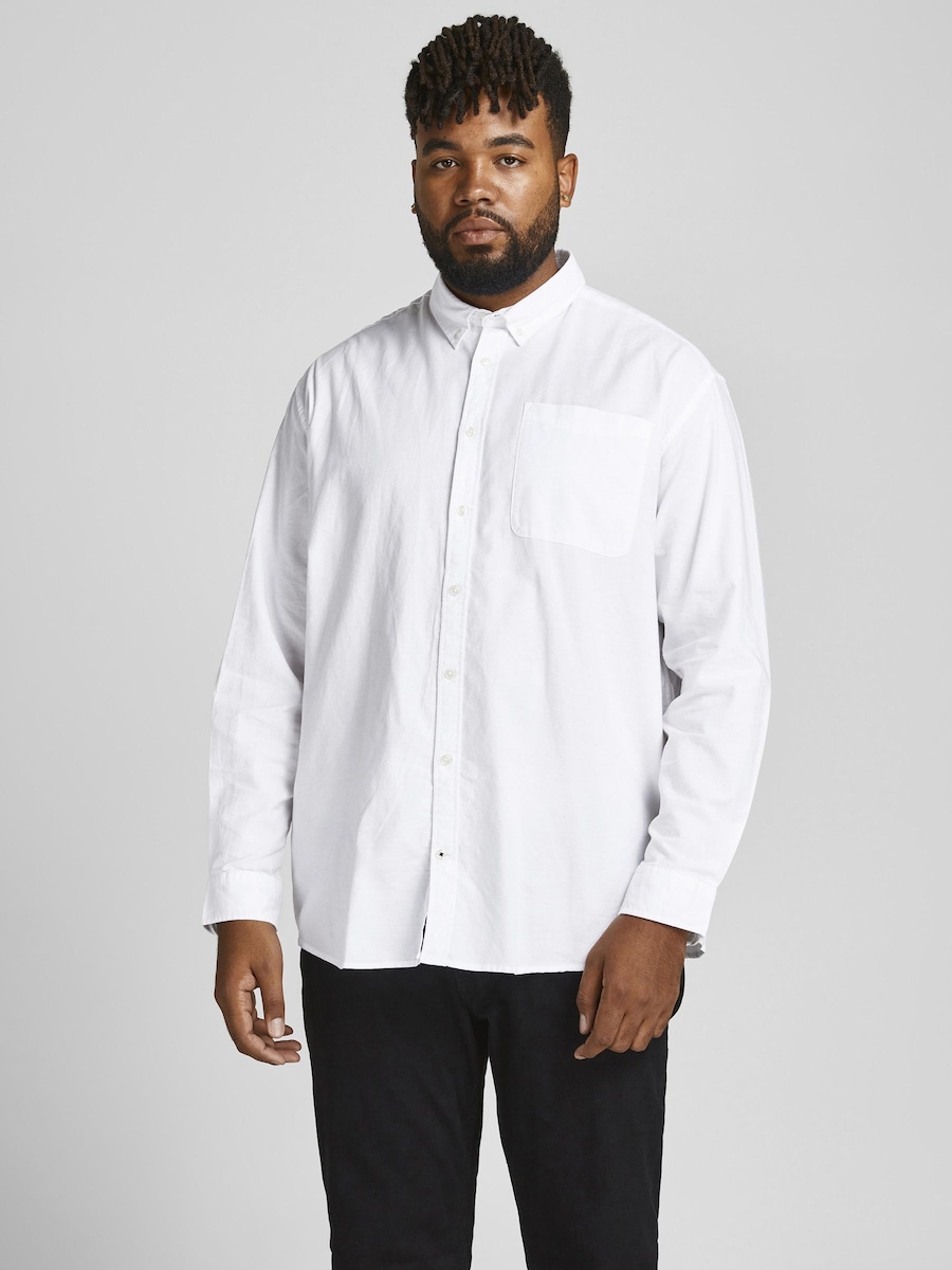 Рубашка Slim Fit на пуговицах Jack & Jones Plus Oxford, белый
