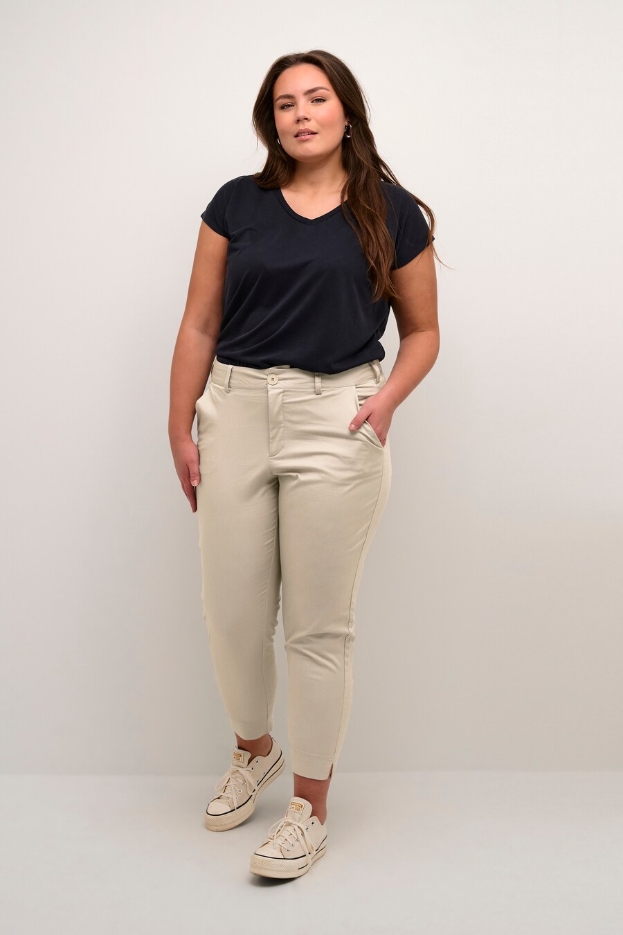 Узкие брюки-чинос KAFFE CURVE, бежевый