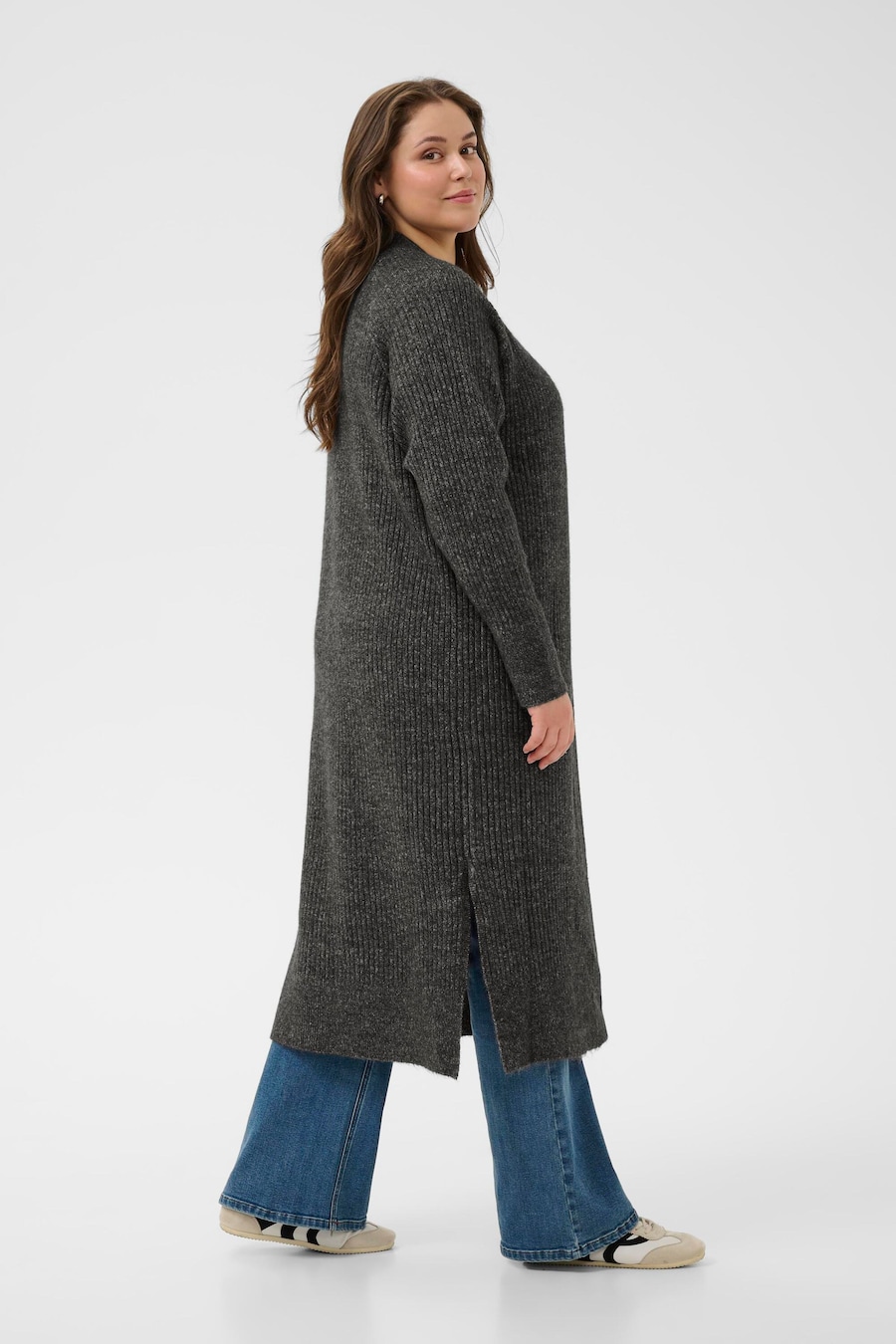 Вязаный кардиган KAFFE CURVE Rinye, антрацит