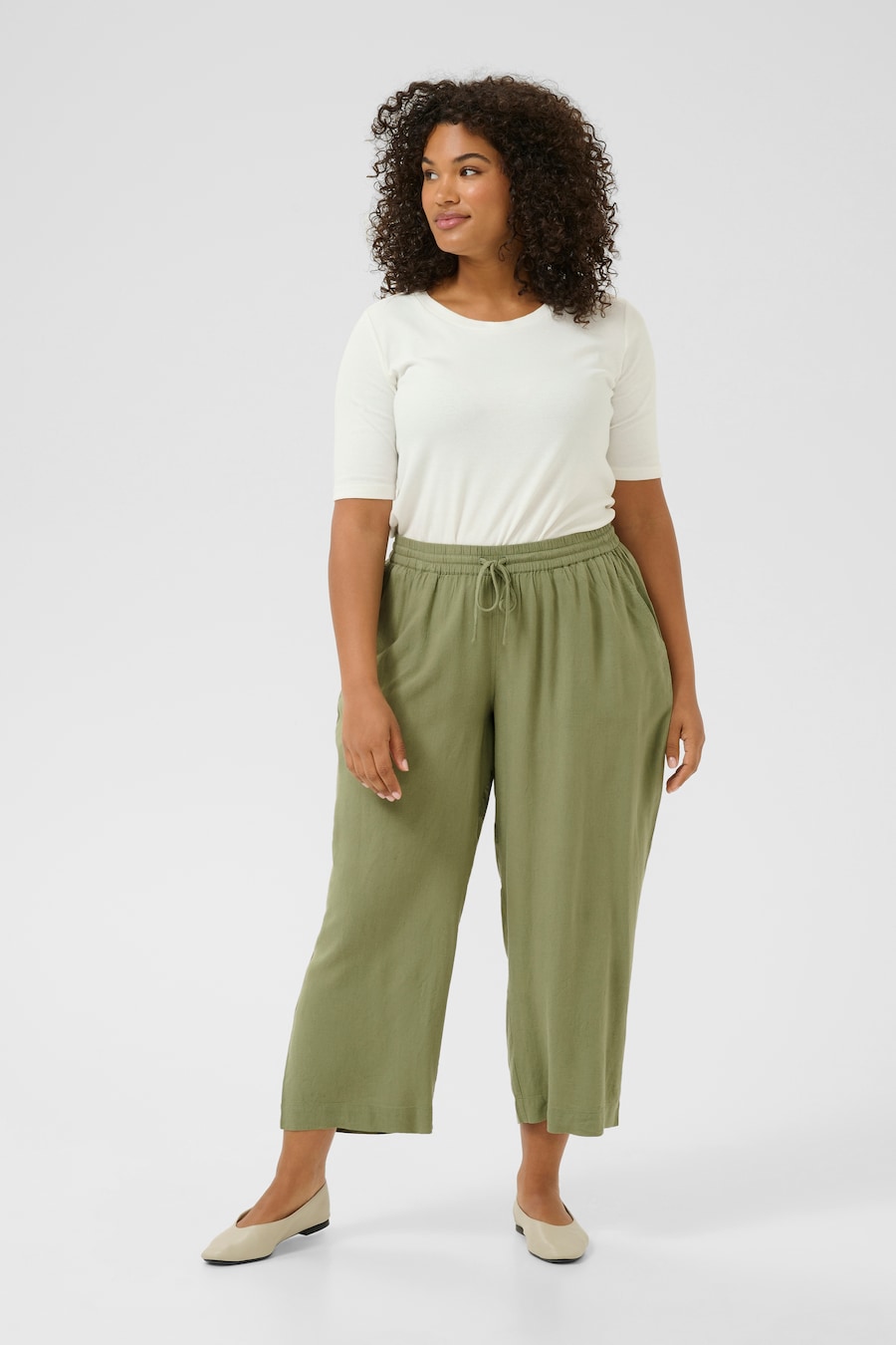Брюки свободного кроя KAFFE CURVE Mille, оливковый