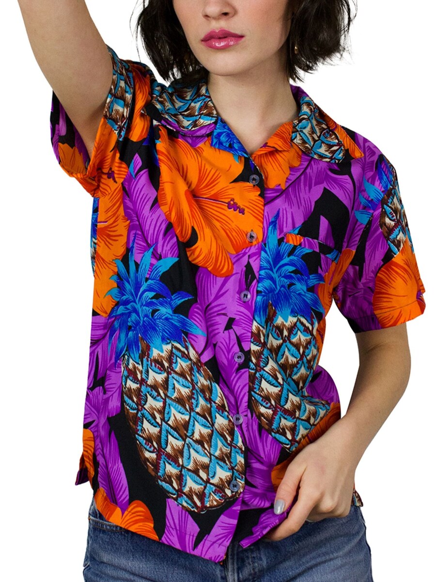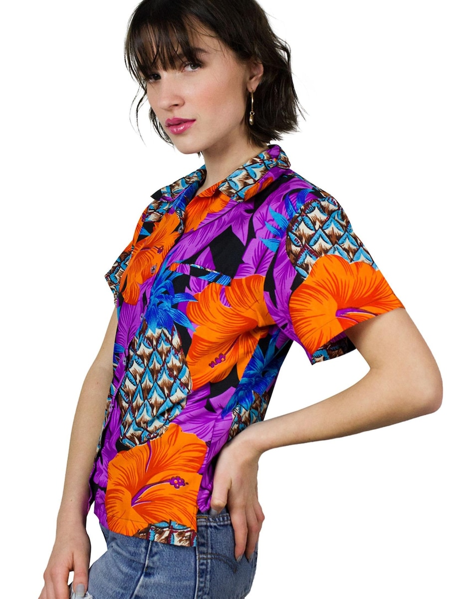 Блуза King Kameha Pineapple Hibiscus Black Line, фиолетовый 4 119₽