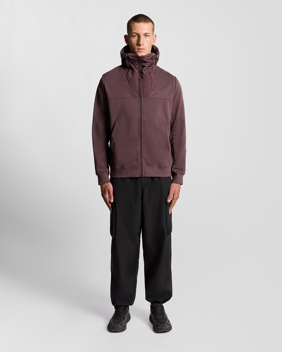 Толстовка с капюшоном на молнии Lyle & Scott Panelled Hybrid, мокко