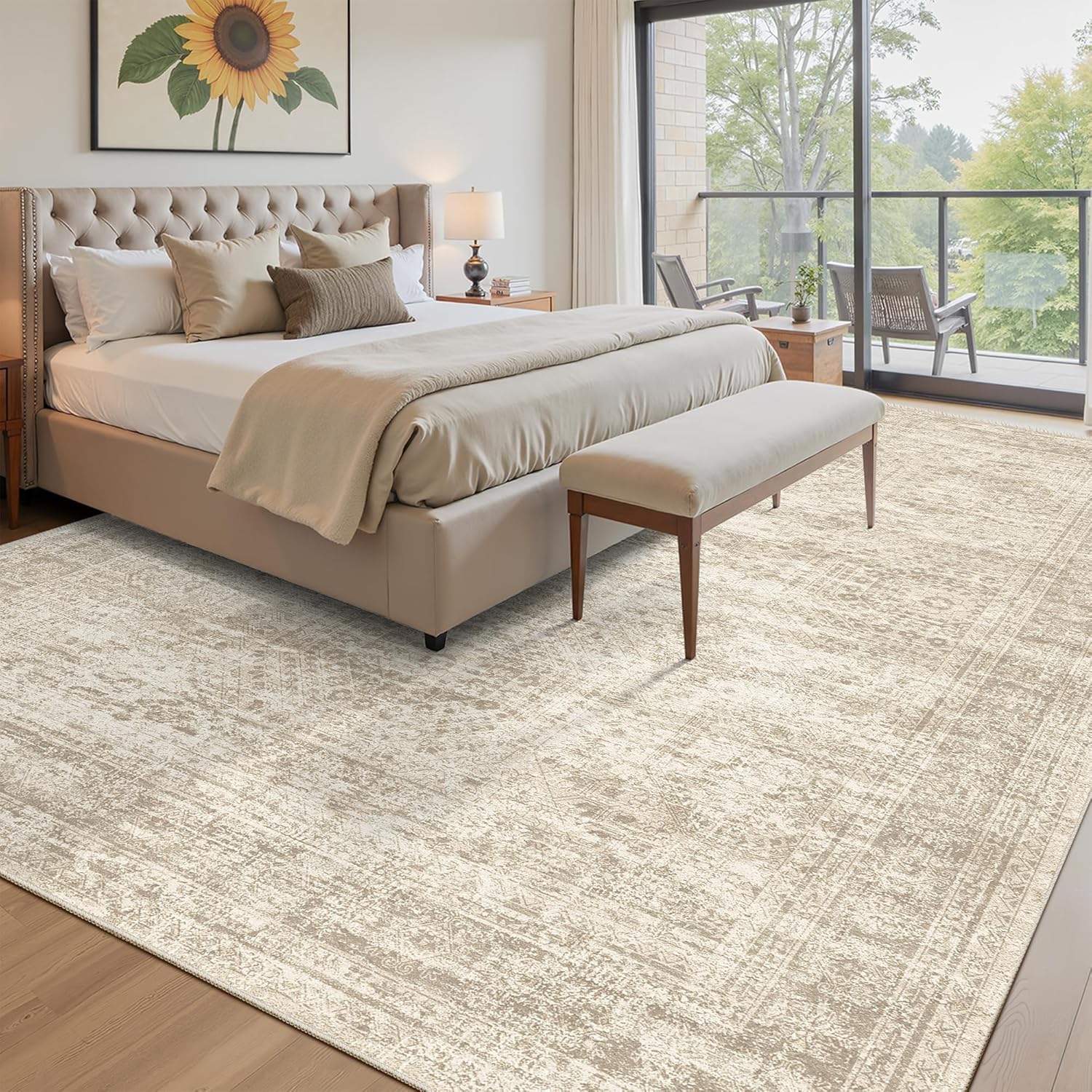 Создайте гармоничную и уютную атмосферу в вашей гостиной с этим просторным ковром нежного бежевого оттенка. Его размер идеально подходит для больших помещений, визуально расширяя пространство и задавая спокойную, теплую тональность всему интерьеру.