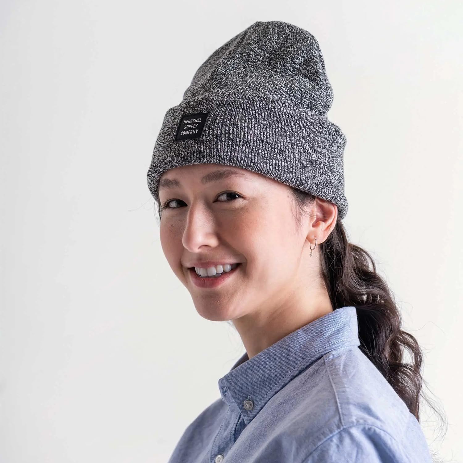 Abbott - классическая шапка-бини плоской вязки с завышенной посадкой. Высокая посадка и широкая манжета украшены тканым лейблом Herschel Supply.