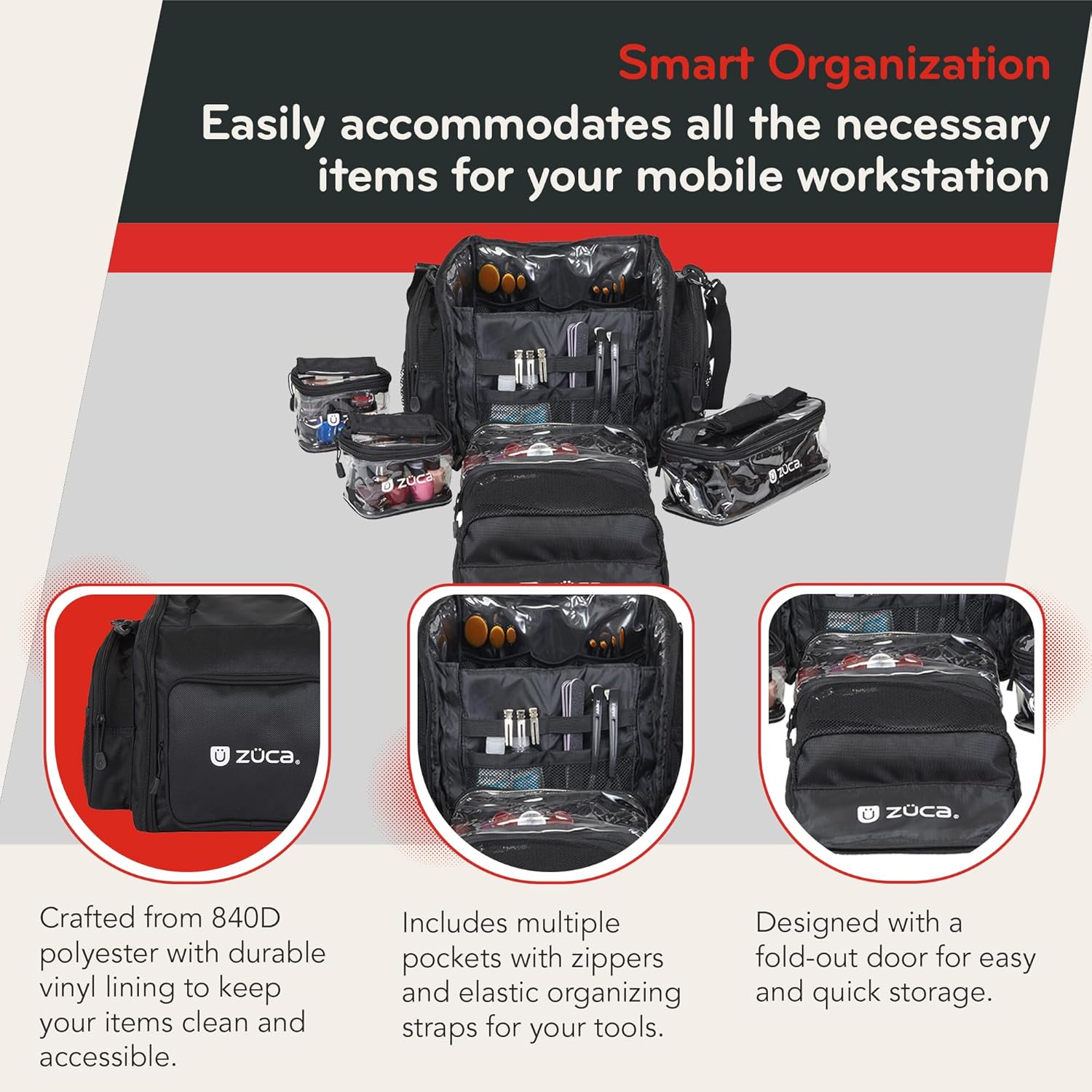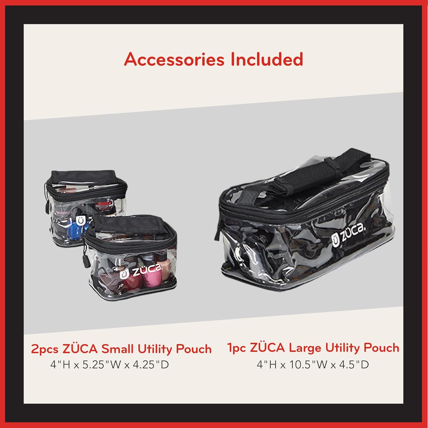 Входящие в комплект аксессуары (2) Маленькие хозяйственные сумки 4”В x 5,25”Ш x 4,25”Г (1) Большая сумка 4”В x 10,5”Ш x 4,5”Г *Хозяйственные сумки ZÜCA покрыты прочным, легко моющимся прозрачным винилом.
