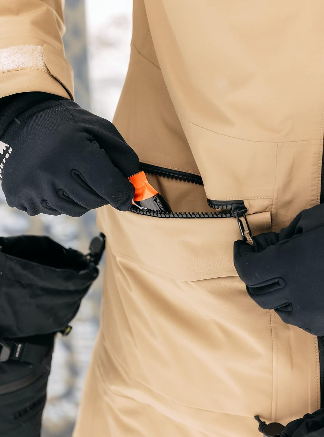 Эргономичный эластичный гетр на талии с соединением куртки и брюк; Внутренние сетчатые карманы для хранения, термокарман для сохранения тепла вашего устройства, карманы для рук на молнии, внутренний карман на молнии для очков и линз, а также карман на рукаве для пропуска на молнии для тепла и хранения вещей