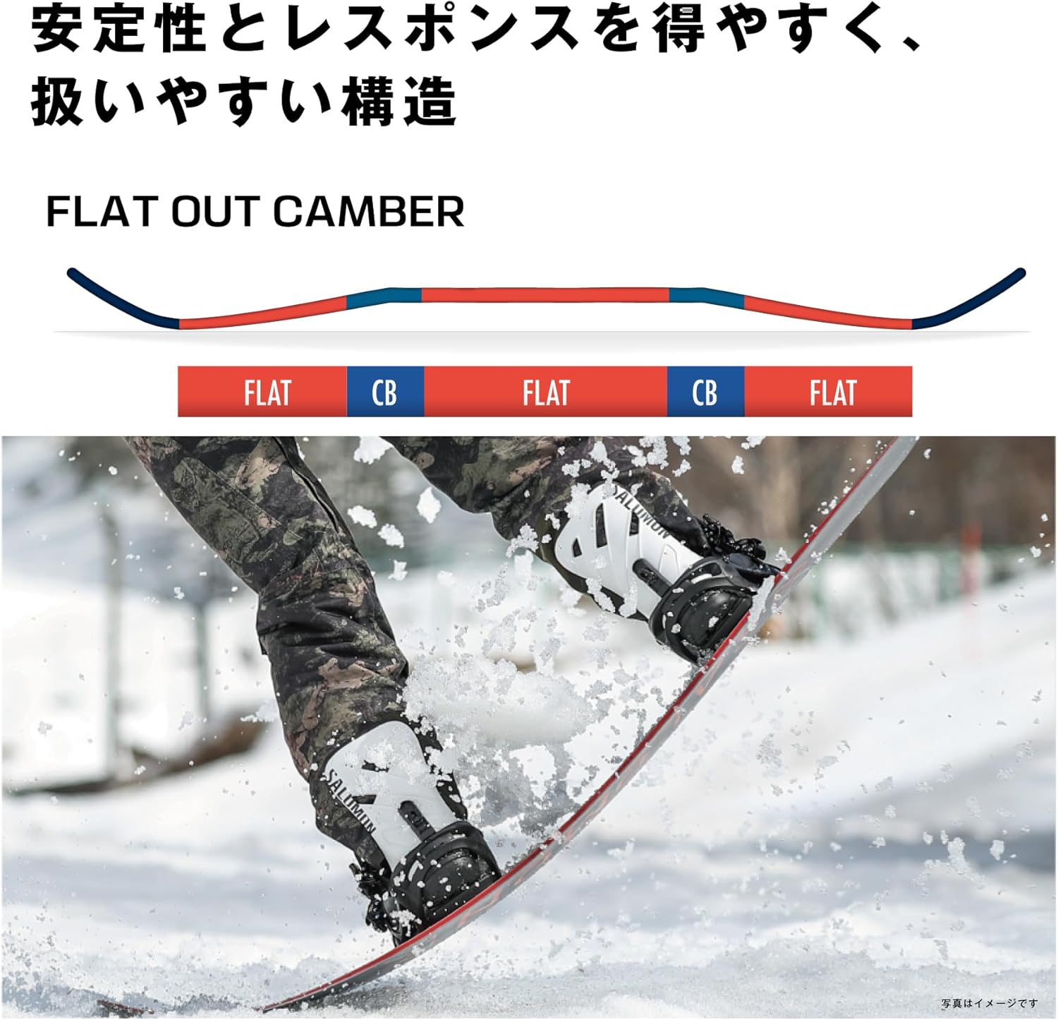 Flat Out Camber Плоский профиль с прогибом под стопой обеспечивает максимальную устойчивость и отзывчивость, когда это необходимо.