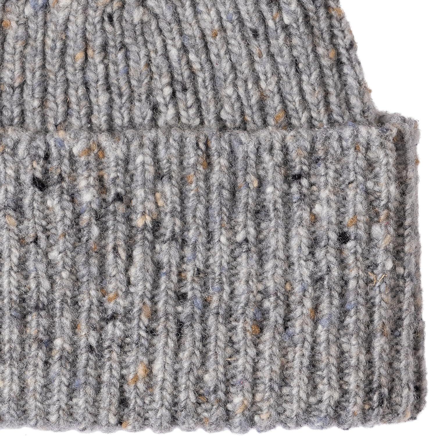 Эта серая шапка-бини, изготовленная из роскошной овечьей шерсти, отличается ребристыми деталями и дополнена пушистым помпоном.