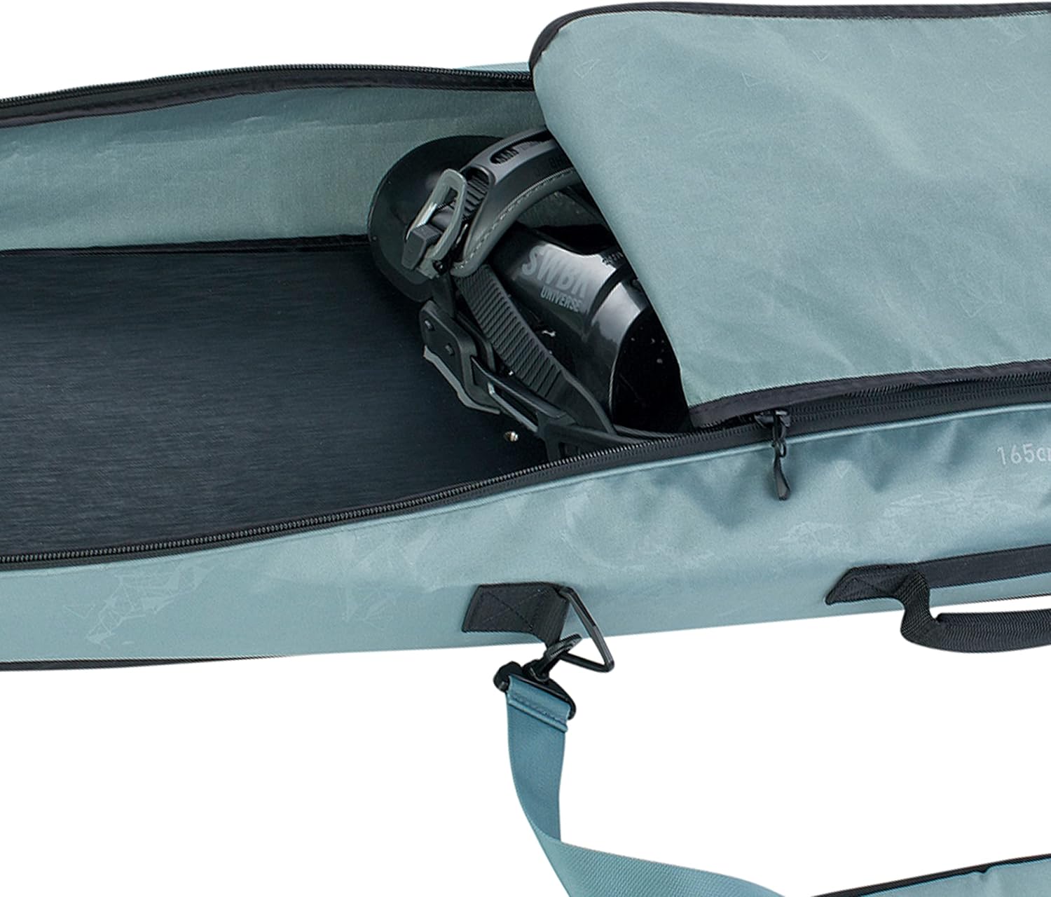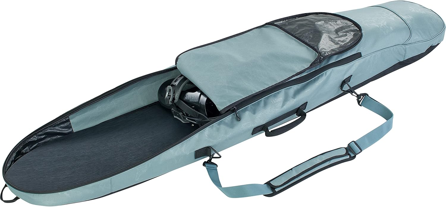- Содержимое коробки: сумка для транспортировки сноубордов EVOC BOARD BAG - мягкие накладки на носу и хвосте сумки - съемный плечевой ремень - ручка для переноски - подходит для досок длиной до 165 см - цвет: стальной серый