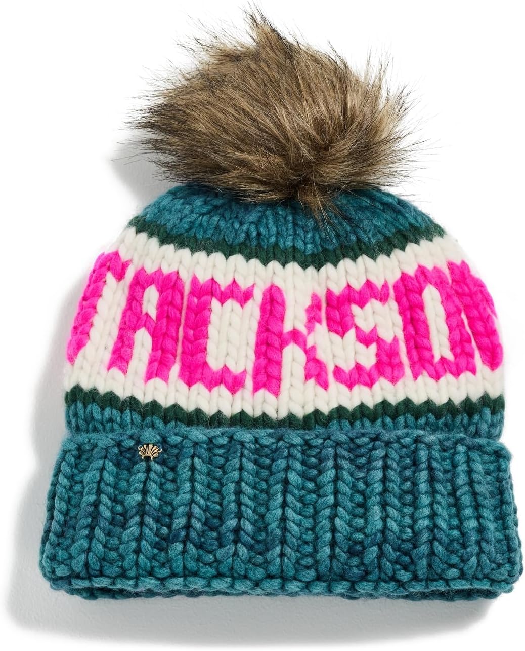 Надпись «Jackson», золотистый логотип на кайме, помпон из искусственного меха