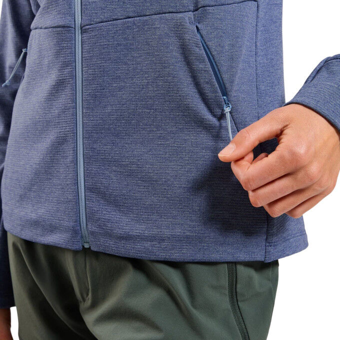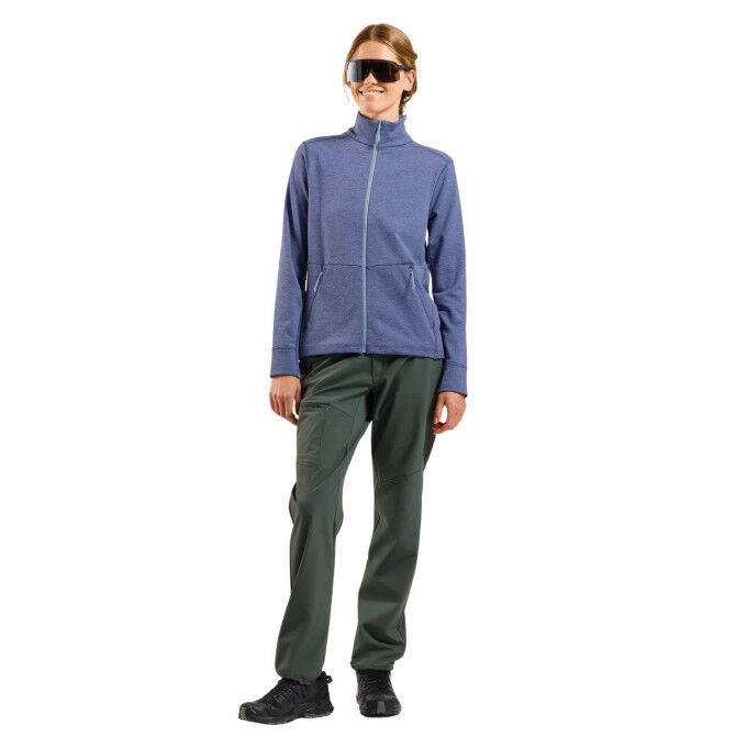 Женская флисовая куртка Odlo Essentials: технические характеристики и отвод влагиЭта флисовая куртка предназначена для походов и активного отдыха и обеспечивает превосходный отвод влаги. Благодаря технологичному потоотводящему материалу она сохраняет вас сухими во время занятий, позволяя вам полностью сосредоточиться на своем походе даже в активные дни. Практичные функции для повседневной жизни на свежем воздухе: Каждая деталь куртки Odlo Essentials была разработана для упрощения ваших прогулок: Боковые карманы на молнии для того, чтобы все необходимое было под рукой; основная ткань и подкладка изготовлены из переработанного полиэстера; встроенный эластан для большей гибкости и свободы движений; простой уход и быстрое высыхание для повседневного использования. Ответственный и экологичный выбор: флисовая куртка Odlo Essentials - часть экологически ответственного подхода. Основной материал на 93% состоит из переработанного полиэстера, а вставка и подкладка - на 100%, что сочетает в себе функциональность и экологичность. Таким образом, вы получаете технологичную, экологичную и экологичную одежду, подходящую как для походов, так и для поездок по городу.