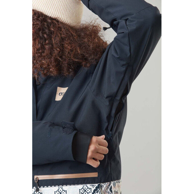 Куртка GLAWI JKT отличается свежим и уникальным дизайном и дополнит любой ваш зимний наряд. Эта красивая женская горнолыжная куртка GLAWI JKT от Picture изготовлена из двух слоев мембран, которые обеспечивают отличную защиту во время спуска по скользким склонам. Для обеспечения эффективности изделия Picture использует переднюю часть из переработанного полиэстера 10K/10K, который обработан высокотехнологичным составом Teflon EcoElite, что делает его водоотталкивающим и долговечным без ПФУ: эта горнолыжная куртка водонепроницаема с рейтингом 10 000 и воздухопроницаема с индексом 10 000 г/м²/24 часа. В плохую погоду или при сильном потоотделении ваша кожа всегда останется комфортно сухой, пока вы скользите по целине благодаря этим двум ключевым характеристикам. С точки зрения сохранения тепла GLAWI JKT получает 6 из 10 баллов за свою отличную способность поддерживать комфортную температуру в течение всего дня. Молнии по бокам обеспечивают дополнительную вентиляцию, регулируя и, что еще важнее, снижая температуру тела. Манжеты, подол и капюшон регулируются, позволяя подогнать куртку по размеру, обеспечивая комфортное и плотное прилегание. Эти регулировки также предотвращают попадание снега внутрь куртки во время интенсивного катания, оптимизируя каждое приключение на трассе. Удлиненная спинка куртки GLAWI JKT делает ее стильной и прохладной, идеально подходящей для Альп, города или просто для отдыха на природе. Прикрепленные снегозащитные гетры служат барьером, предотвращающим попадание снега внутрь куртки.