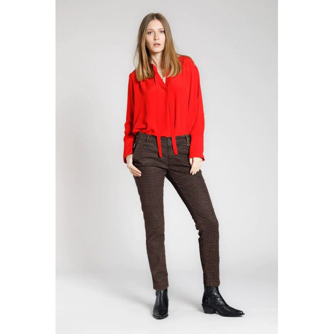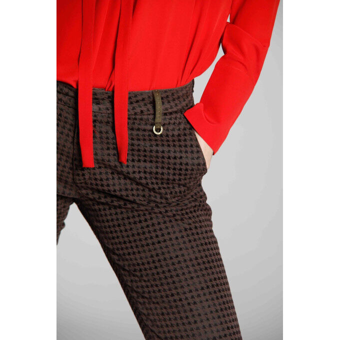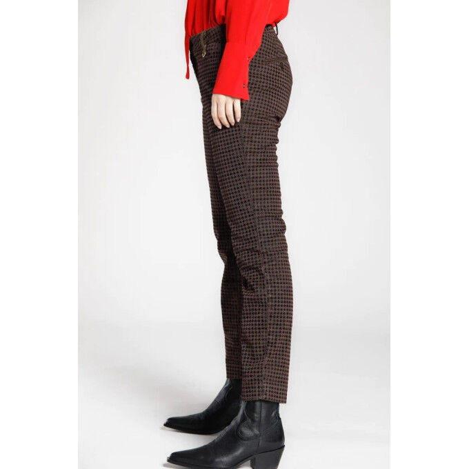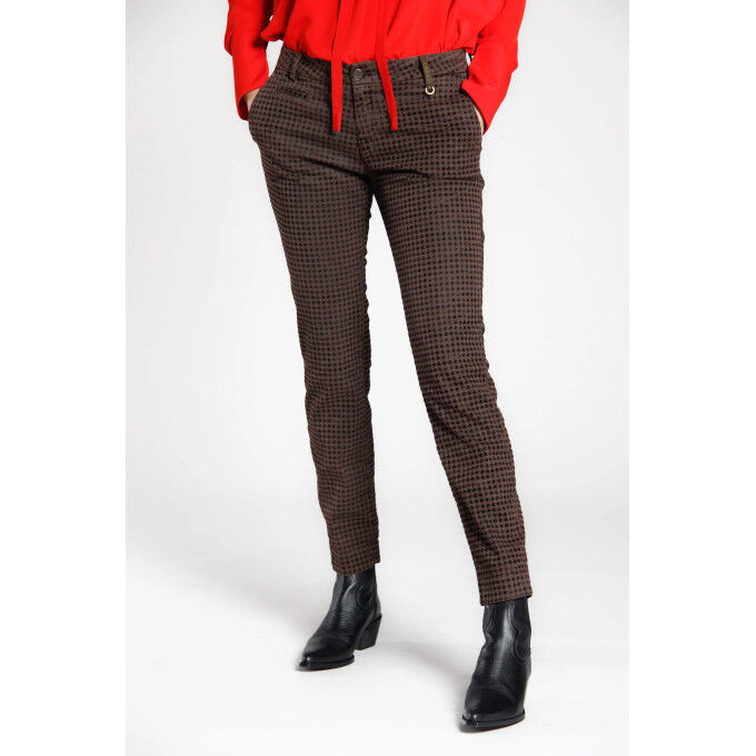 Чтобы завершить ваш изысканный образ, женские брюки-чиносы Jaqueline City от Mason's идеально подойдут. Эта модель имеет привлекательный облегающий крой, подчеркивающий вашу фигуру. Они облегают ноги и обеспечивают комфорт в бедрах. Эти брюки очень удобны и не стесняют движений. Они также подходят для любого типа фигуры. Эти брюки - классика, изысканность которой придает суперэластичный атлас, используемый в их конструкции. Они также украшены знаменитым узором гусиная лапка, который просто необходим в вашем гардеробе, особенно в зимние месяцы. Эти брюки имеют задние карманы с окантовкой, заклепку с логотипом Mason's, шлевки для ремня и карман для мелочи спереди. Кроме того, ткань, используемая для изготовления брюк Jaqueline City, состоит на 68% из тенселя, на 26% из хлопка, на 4% из вискозы и на 2% из эластана, что делает их легкими, прочными и воздухопроницаемыми. Эти брюки-чинос Jaqueline City доступны в коричневом цвете. Зимой их рекомендуется сочетать с вискозной рубашкой и черным пиджаком, чтобы создать модный и изысканный образ.