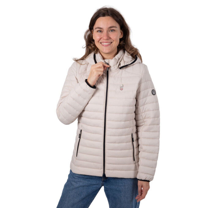 Женская пуховая куртка с практичным и универсальным дизайном для гор и городаЭта функциональная пуховая куртка оснащена съемным капюшоном, который адаптируется к любым погодным условиям. Передняя молния позволяет легко надевать и снимать ее, а крой идеально облегает женский силуэт, не ограничивая свободу движений.