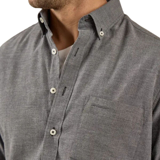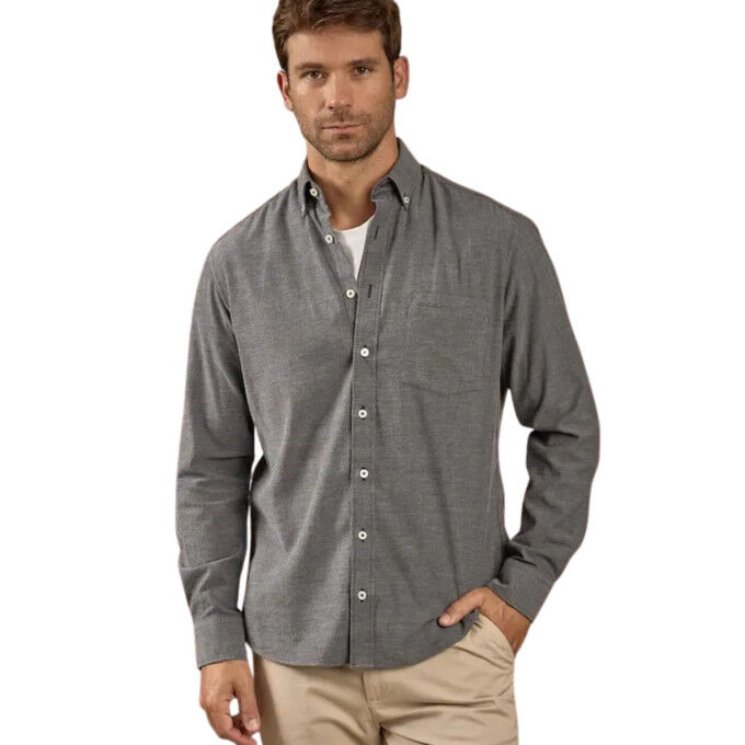 Рубашка Eugena отличается своим сплошным антрацитовым меланжевым видом, что придает ей нотку простоты и современности. Ее прямой, стандартный крой обеспечивает естественную драпировку, а воротник на пуговицах подчеркивает элегантный, но в то же время повседневный стиль. Она идеально подходит для вашего рабочего дня в офисе или прогулки по городу и адаптируется ко всем вашим потребностям.