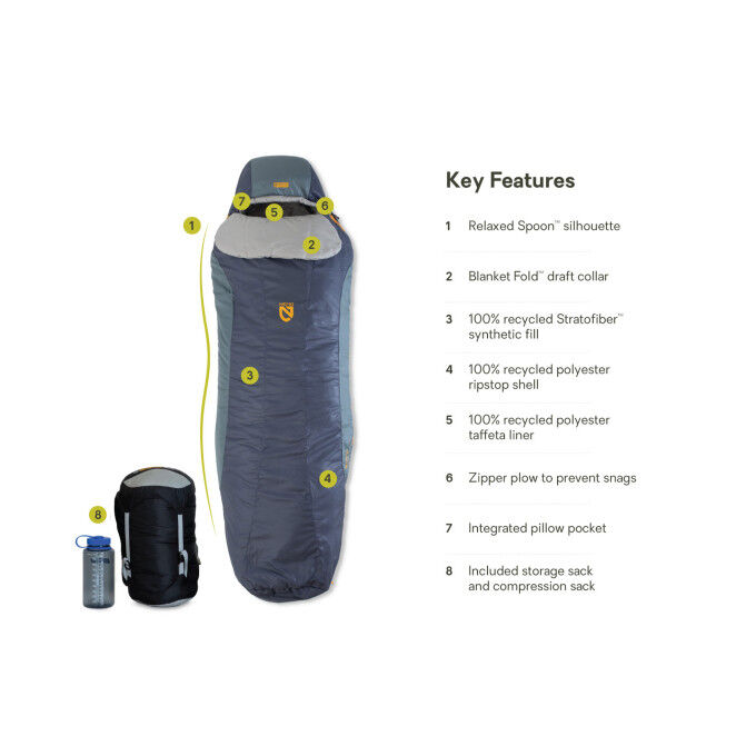 Спальный мешок NEMO Tempo мужской 20 REG разработан для обеспечения комфортного и спокойного сна даже при прохладной температуре. Благодаря фирменной форме NEMO Spoon он обеспечивает просторную посадку, оставаясь при этом компактнее традиционного прямоугольного спального мешка. Эта модель идеально подходит для тех, кто спит на боку и ищет оптимальный комфорт без ущерба для производительности.