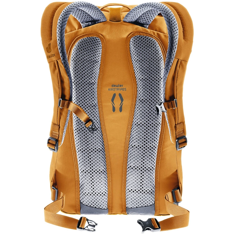 ОписаниеБлагодаря рюкзаку Deuter Stepout 22 ваши вещи всегда будут хорошо организованы. Рюкзак предлагает множество вариантов для удобной транспортировки ваших офисных или учебных материалов. Он также невероятно стильный. Внутри рюкзака Stepout 22 есть отделение для 15-дюймового ноутбука, отделение для планшета и держатель для бутылки с водой. Все это также удобно хранить в эластичном боковом кармане. Рюкзак имеет боковой карман на молнии, поэтому ваш телефон всегда будет легко доступен, но при этом надежно спрятан. Также внутри есть отдельное отделение для ценных вещей. Застежка-ролл-топ позволяет немного увеличить объем рюкзака, так что останется достаточно места для куртки или покупок. Благодаря простому, но стильному дизайну рюкзак идеально подходит для города. Переработанный материал также помогает окружающей среде, поскольку рюкзак изготовлен примерно из 26 переработанных ПЭТ-бутылок.