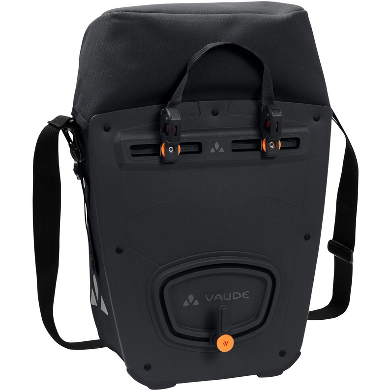 ОписаниеГородской задний велосумочный кофр Comyou Pro от Vaude с застежкой-клапаном изготовлен из прочного материала с текстильным эффектом и водонепроницаем, что исключает необходимость в дополнительном дождевике. Он выдерживает любую погоду и станет практичным спутником как для повседневного использования, так и для велопрогулок. Вместительное основное отделение с пылезащитными мембранами вмещает множество вещей. Сумка крепится к правому или левому заднему багажнику с помощью системы QMR 2.0 и прочной задней пластины, регулируется с помощью удобных маховиков и легко снимается. Велосумку можно закрепить непосредственно на крюке QMR с помощью велосипедного замка. Входящий в комплект ремень для переноски позволяет удобно носить ее на плече. Светоотражающие элементы также обеспечивают хорошую видимость в потоке машин.