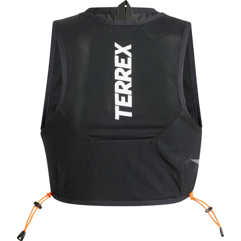 ОписаниеБеговой жилет Techrock 5L от adidas Terrex благодаря своему объему идеально подходит для длительных тренировок и соревнований. Помимо напитков и гелей/батончиков, в него легко поместится необходимое снаряжение. В комплект входят две мягкие фляги объемом 500 мл, которые легко доступны спереди. Задний карман расположен низко, чтобы вы могли дотянуться до него даже во время бега; также есть два кармана на плечевом ремне для таких вещей, как гели или мобильный телефон. Благодаря крою и переработанному эластичному материалу беговой жилет хорошо сидит и легко сочетается с любой одеждой. Зигзагообразный нагрудный ремень и эластичная резинка на подоле позволяют регулировать жилет по вашему желанию, гарантируя минимальное подпрыгивание и натирание во время движения.