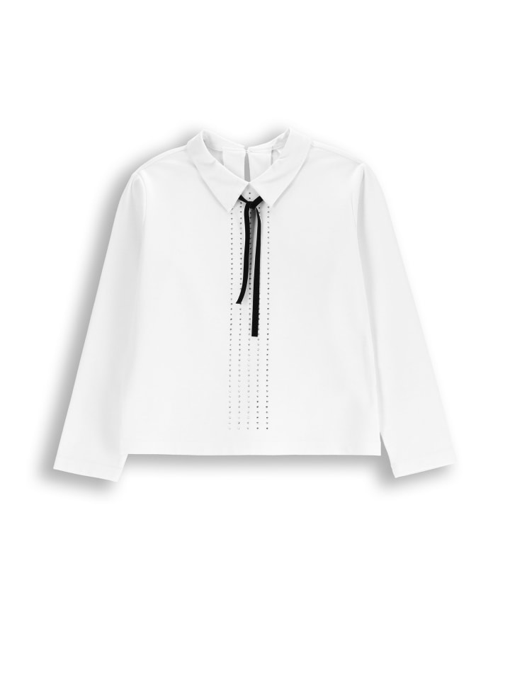 Откройте для себя исключительную элегантность с нашей белой блузкой с длинными рукавами, специально разработанной для юных леди. Изготовленная из эластичного, легкого хлопка, она обеспечивает комфорт и свободу движений, идеально подходит для особых случаев. Изящная отделка спереди, такая как стразы и декоративная лента, придает блузке неповторимый шарм. Округлый вырез и изящный бант на шее подчеркивают классический стиль, который обязательно понравится каждой девочке. Блузка доступна для широкого возраста от 4 до 15 лет, обеспечивая идеальную посадку для каждой юной элегантной девочки. Изделие сертифицировано ECO 5, что гарантирует безопасность и экологичность производства. Идеально подходит для семейных встреч, школьных спектаклей и других важных мероприятий, эта блузка станет любимой в гардеробе вашего ребенка.