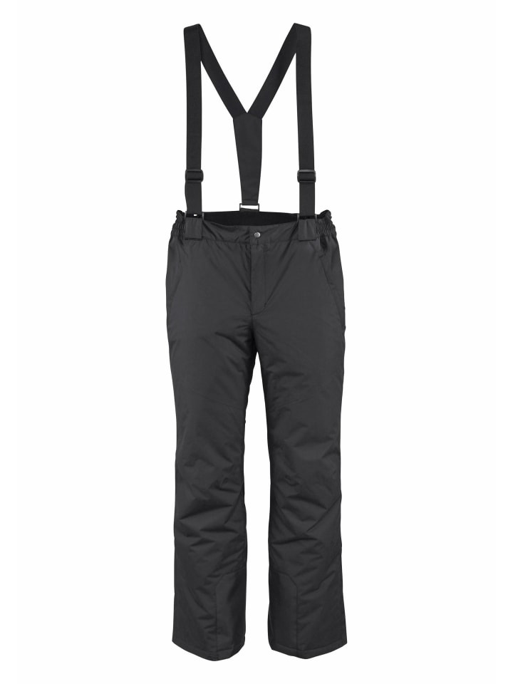 Ветро- и водонепроницаемость: 3000 мм водяного столба. Низ брюк со снегоотталкивающими гетрами, молнией и усилением. Съемные и регулируемые подтяжки. Застежка на кнопки и молнию. Боковые карманы на молнии. Эластичный пояс. Дышащий материал.