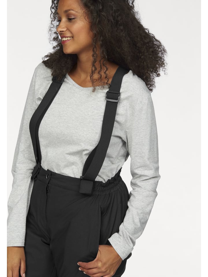 Теплые, дышащие. С отстегивающимися подтяжками и боковыми карманами на молнии. Снегозащитные гетры и прочные усиления по низу штанин. Ветрозащитный и водонепроницаемый материал. Материал без ПФУ.