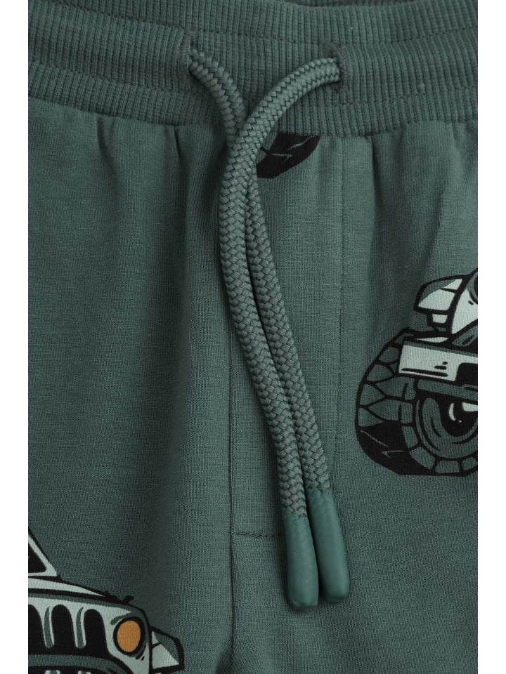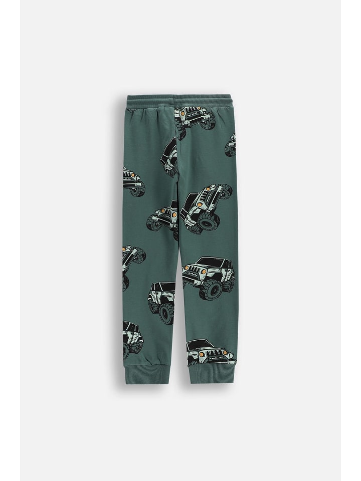 Зеленые спортивные брюки для мальчиков с автомобильным принтом