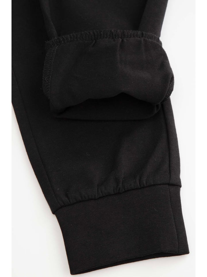 Удобные спортивные брюки для мальчиков. Откройте для себя комфорт и стиль с нашими черными спортивными брюками для мальчиков. Изготовленные из мягкого хлопка с добавлением эластана, они обеспечивают полную свободу движений для повседневных игр и занятий. Эластичный пояс со шнурком обеспечивает идеальную посадку, а манжеты на щиколотках добавляют современный штрих. Эти простые брюки - идеальный выбор для любого случая - от школьных дней до поездок на выходные. Универсальный цвет позволяет легко сочетать их с любимой рубашкой или свитером вашего ребенка. Благодаря удобным карманам ваш маленький исследователь всегда будет иметь свои сокровища под рукой. Выбирая наши брюки, вы инвестируете в качество и комфорт, которые понравятся каждому ребенку и его маме. Эти брюки идеально подходят для мальчиков от 4 до 8 лет и станут неотъемлемой частью гардероба вашего ребенка.