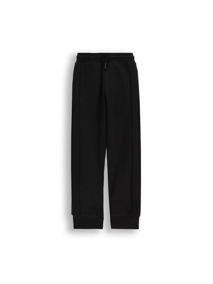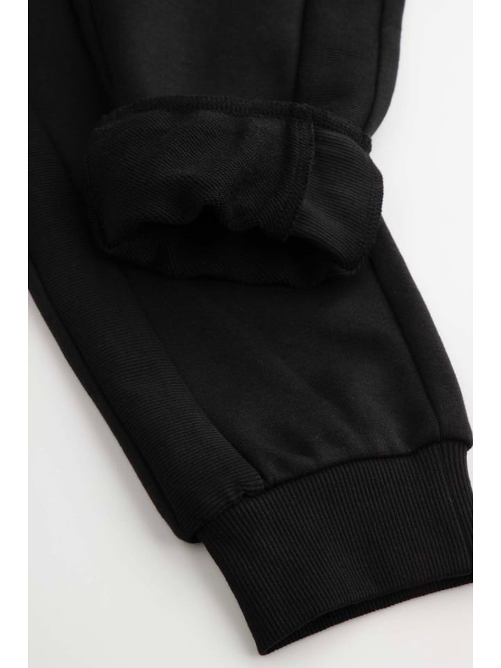 Удобные спортивные брюки для мальчиков. Откройте для себя черные облегающие спортивные брюки, которые идеально сочетают в себе стиль и комфорт. Изготовленные из мягкой трикотажной ткани, они согреют и обеспечат комфорт в холодные зимние дни. Благодаря эластичному поясу со шнурком брюки идеально садятся по фигуре, не стесняя движений ребенка. Длинные штанины с манжетами делают их практичными и гарантируют гармоничное сочетание с любой одеждой. Идеально подходят для повседневной носки, школы или прогулок на выходных. Сертификат ECO 5 гарантирует соответствие изделия самым высоким стандартам безопасности и экологичности. Эти брюки - не только модный выбор, но и инвестиция в качество и долговечность. Они докажут свою ценность в любой ситуации, обеспечивая вашему ребенку комфорт и свободу движений. Выбирайте их для своего сына и будьте спокойны, зная, что сделали лучший выбор.
