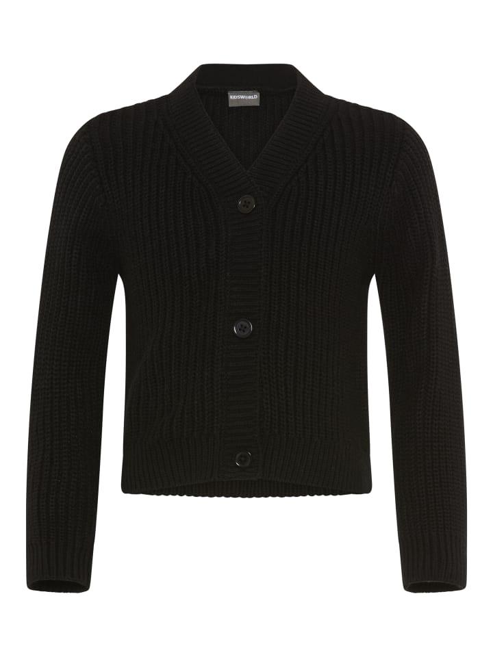 Оставайтесь в уютной и стильной обстановке с этим кардиганом от KIDSWORLD. Кардиган с V-образным вырезом доходит до бедер и дополнен ребристыми манжетами на длинных рукавах и подоле. Пуговицы добавляют нотку изысканности. Кардиган изготовлен из быстросохнущего и простого в уходе материала.