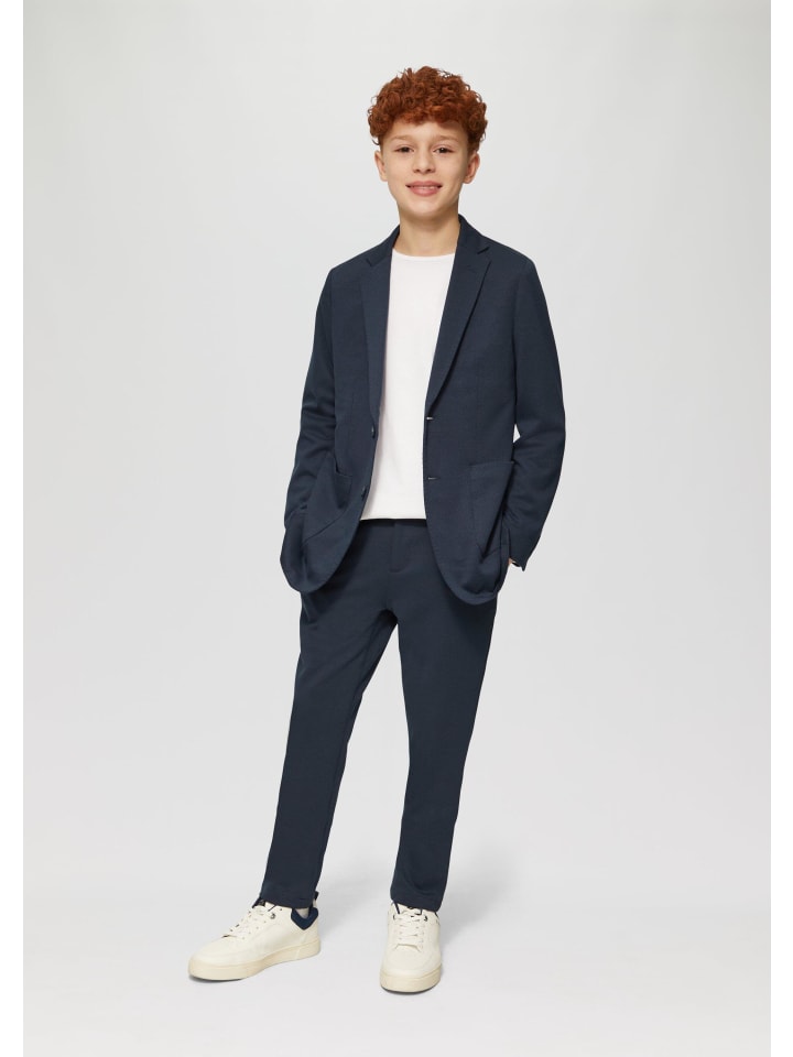 Праздничный блейзер для стильных случаев. Приталенный крой и воротник с отворотами придадут вашему ребенку элегантный вид. Накладные карманы, шлица сзади и застежка на пуговицы сочетают в себе комфорт и стиль. Идеально подходит для особых случаев и праздничных случаев.