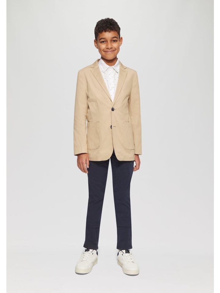 Элегантный блейзер для праздничных случаев вашего подростка. Приталенный крой из слегка эластичной хлопковой ткани обеспечивает комфорт и стиль. Скошенные лацканы, контрастные пуговицы и шлица сзади сочетают в себе классические элементы с современной интерпретацией. Идеально подходит для особых случаев - легко сочетается с брюками чинос или джинсами.