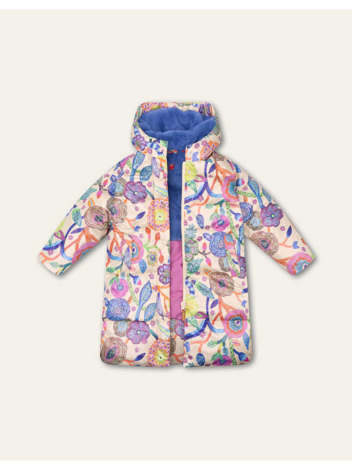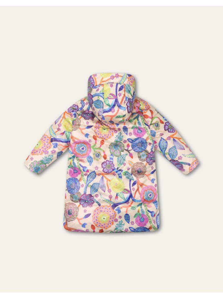 Зимнее пальто средней длины с принтом «Tern Tides» с красивыми цветами и листьями, нарисованными вручную мелками. Пальто с легким блестящим отливом, практичными разрезами по бокам и закругленным подолом. Внутри - уютная плюшевая подкладка для дополнительного тепла. - 75% полиэстер, 25% полиамид (внешний слой) - 100% переработанный полиэстер (наполнитель) - Сделано в Китае