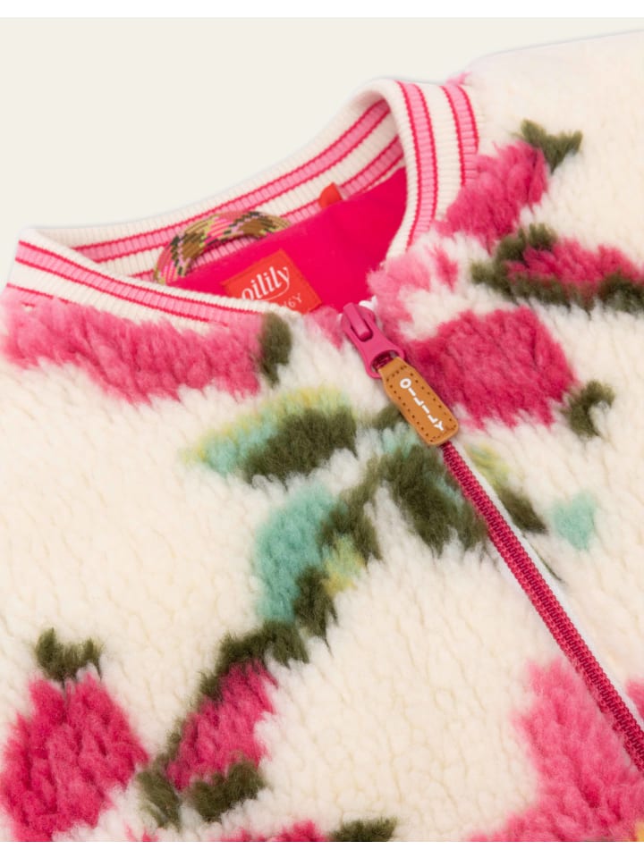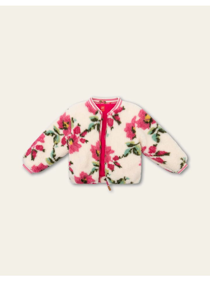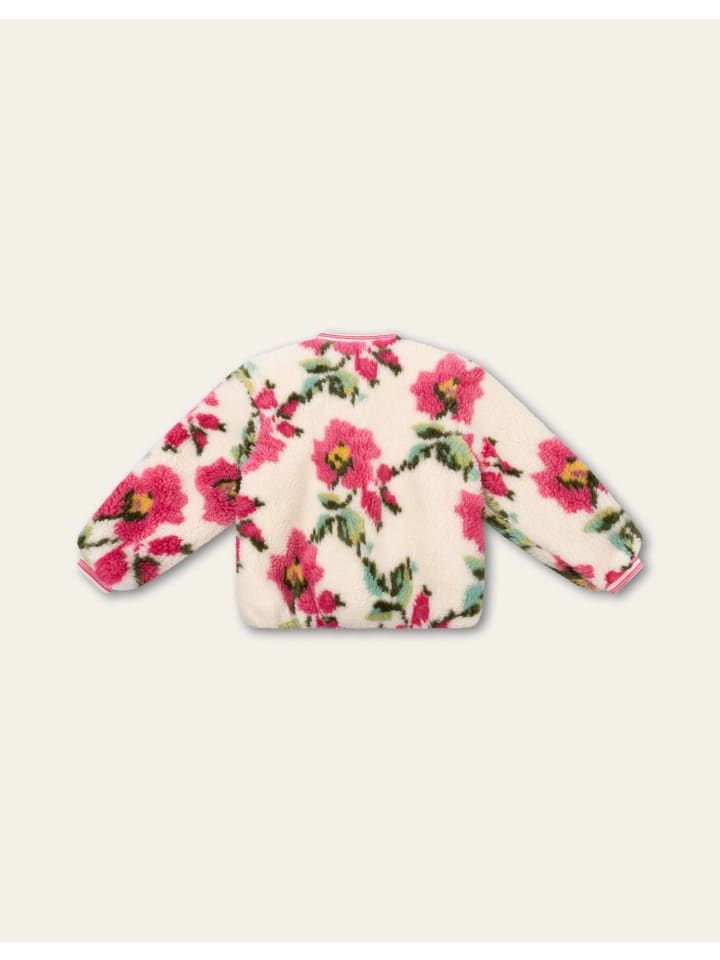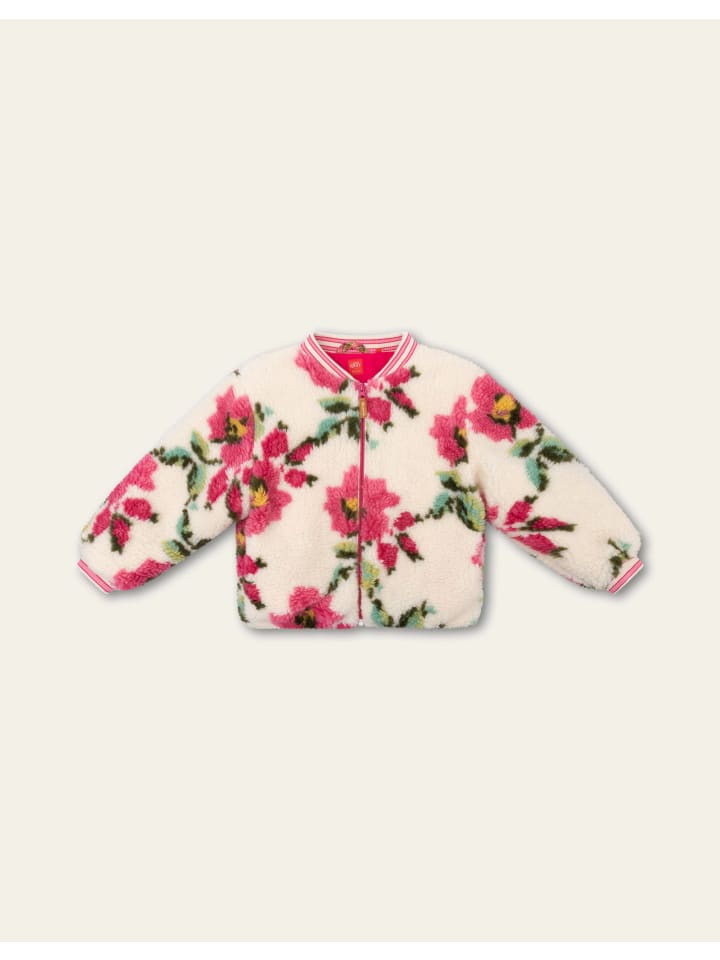 Крупные романтичные цветы принта Vroukje делают эту плюшевую куртку-бомбер особенно очаровательной. Она имеет стильный воротник, практичные карманы и застежку на пуговицы. - 85% полиэстер, 15% акрил (внешний слой) - 100% переработанный полиэстер (наполнитель) - Сделано в Китае