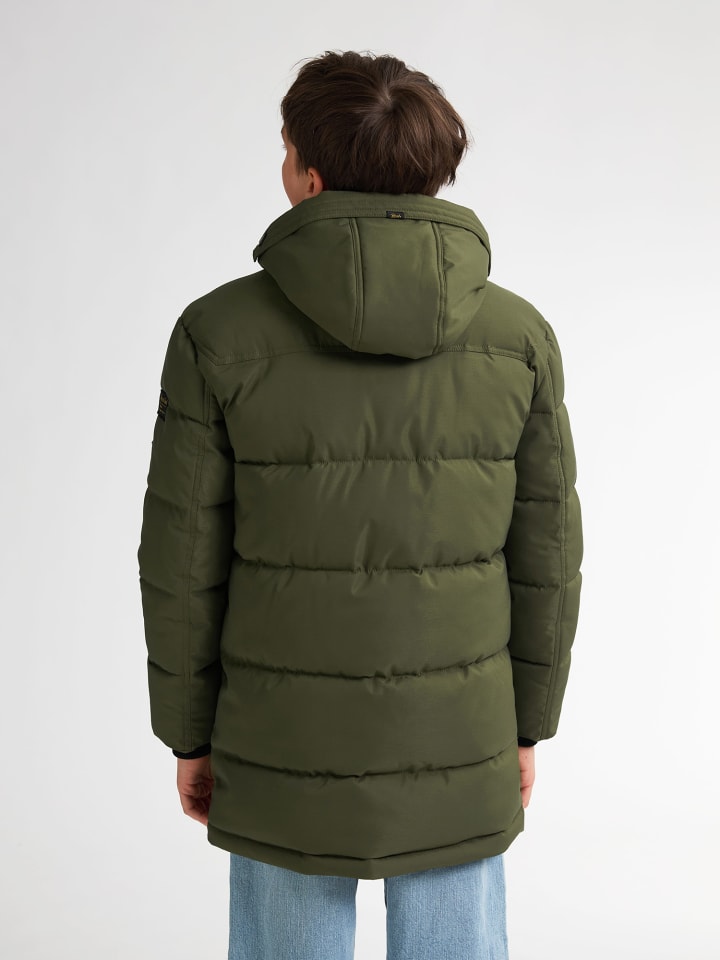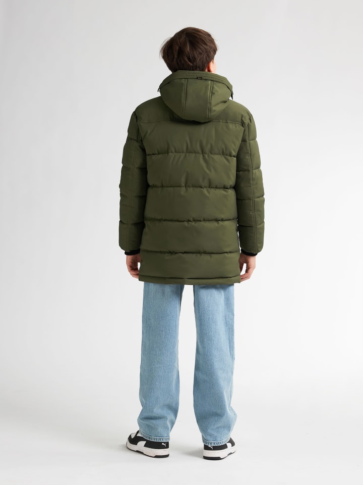 Парка для мальчиков свободного кроя. Эта куртка обеспечивает комфорт и функциональность, идеально подходит для любых приключений. Куртка оснащена капюшоном для дополнительной защиты от непогоды. Множество карманов: два нагрудных кармана на молнии и два боковых кармана для надежного хранения личных вещей. Подкладка: стеганый узор обеспечивает дополнительную изоляцию, сохраняя тепло и комфорт в холодную погоду. Свободный крой: свободный крой обеспечивает полную свободу движений, идеально подходит для активных мальчиков. Изготовлено из 100% полиэстера. Подкладка: 100% переработанный полиэстер.