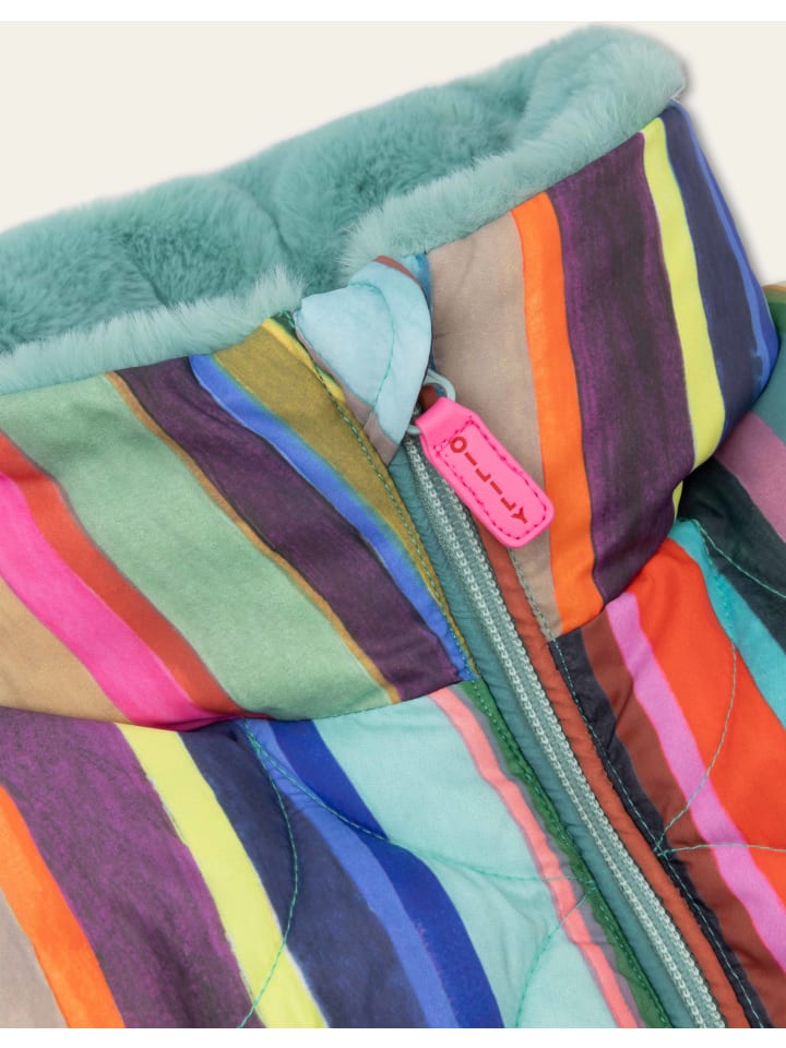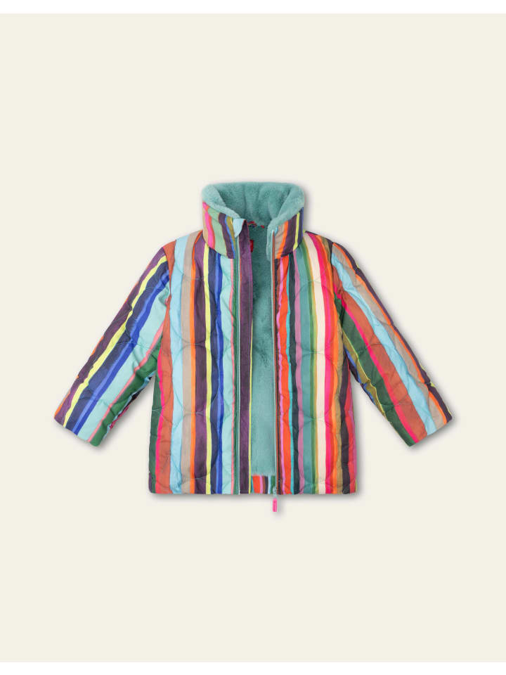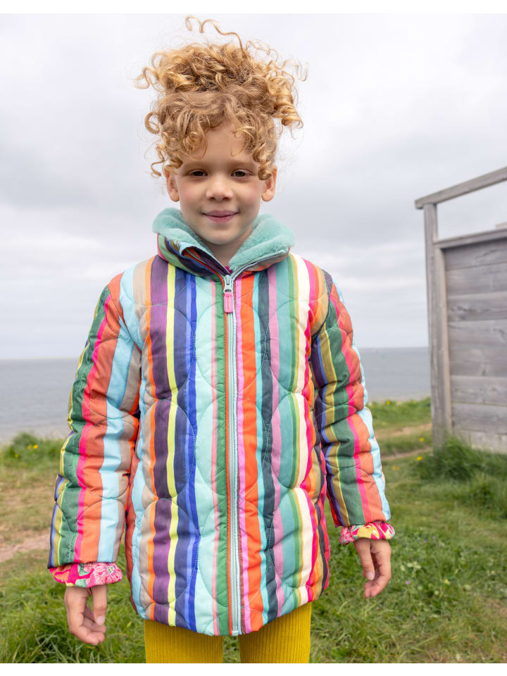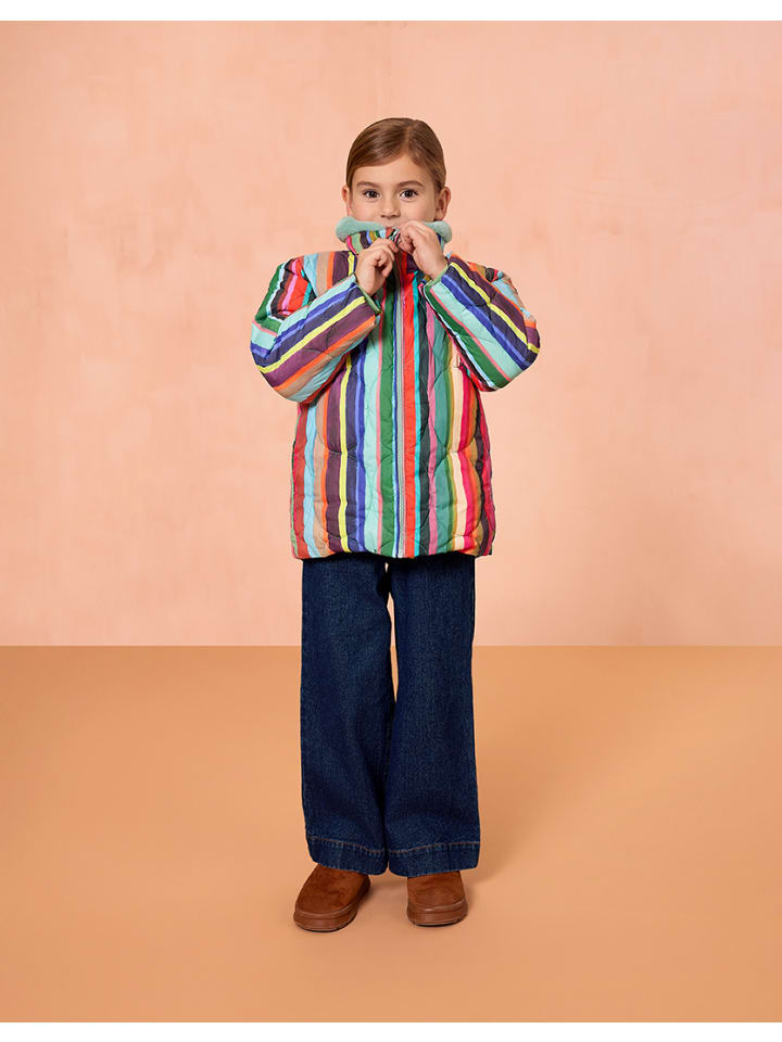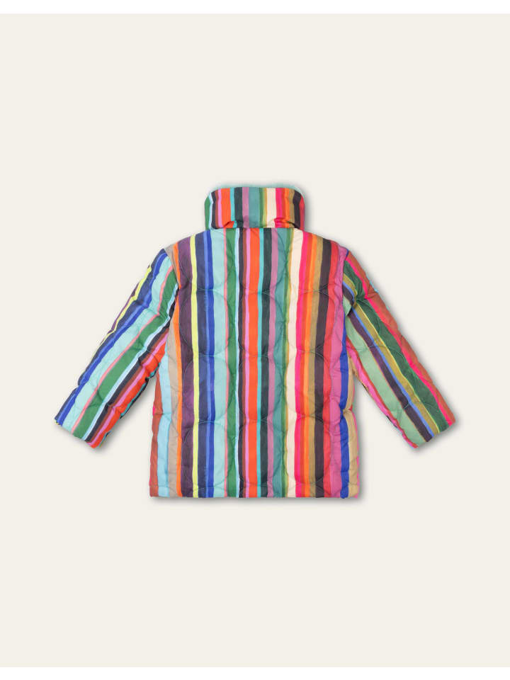 Голландские поля тюльпанов с высоты птичьего полета послужили источником вдохновения для этого дизайна. Полоски принта «Пьетернелла» были нарисованы вручную. Цвета идеально дополняют подкладку из искусственного меха этого прямого зимнего пальто. - 100% переработанный полиэстер (внешний слой и наполнитель) - Сделано в Китае