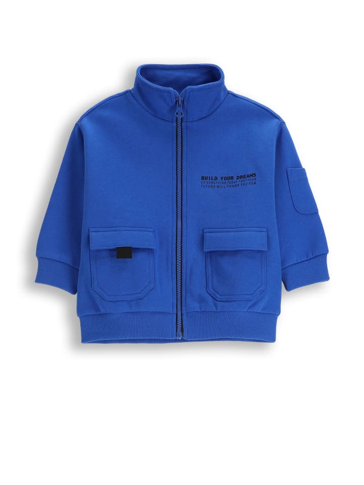 Свитер на молнии с высоким воротником кобальтово-синего цвета. Откройте для себя комфорт и стиль в нашем свитере кобальтово-синего цвета для мальчиков. Изготовленный из мягкой трикотажной ткани, он согреет и обеспечит комфорт в прохладные дни. Удобная застежка-молния позволяет легко надевать и снимать свитер, что очень удобно в повседневной суете. Высокий воротник и теплая флисовая подкладка идеально подходят для прохладного утра. Длинные рукава и эластичные манжеты обеспечивают свободу движений, а передние карманы и дополнительный карман на рукаве повышают функциональность. Свитер украшен изящной надписью, что придает ему современный вид. Сертификация ECO 5 гарантирует соответствие изделия самым высоким стандартам безопасности и экологичности. Этот свитер идеально подходит для прогулок, посещения детского сада или семейных пикников. Он станет надежным выбором для любой мамы, которая ценит качество и стиль для своего ребенка.