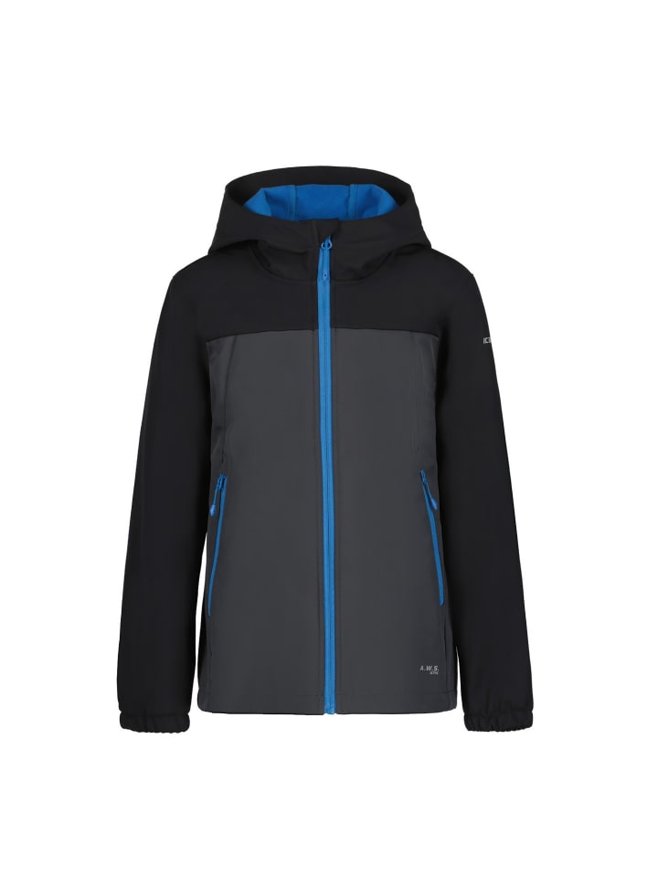 Куртка софтшелл Konan Jr с капюшоном серо-черного цвета Icepeak