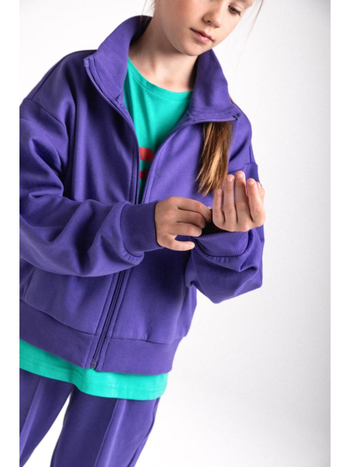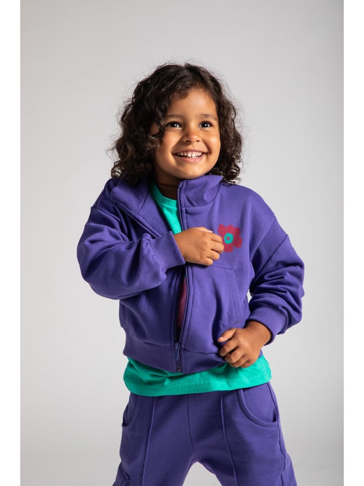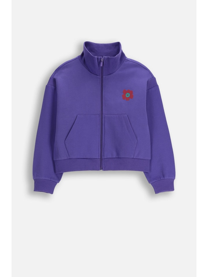Откройте для себя эту фиолетовую толстовку для девочек, которые ценят комфорт и стиль. Изготовленная из мягкого трикотажа с начесом, она согреет и обеспечит комфорт в прохладные дни. Толстовка застегивается на практичную молнию и имеет удобный воротник-стойку для защиты шеи от ветра. Изящный цветочный принт спереди добавляет очарования и уникальности. Вместительные передние карманы идеально подходят для хранения мелких вещей или согрева рук. Длинные рукава заканчиваются эластичными манжетами для идеальной посадки и свободы движений. Эта толстовка - идеальный выбор для повседневных прогулок, прогулок или игр на свежем воздухе. Благодаря универсальному крою и модному цвету ее легко сочетать с другой одеждой вашего ребенка. Идеально подходит для девочек от 4 до 15 лет.