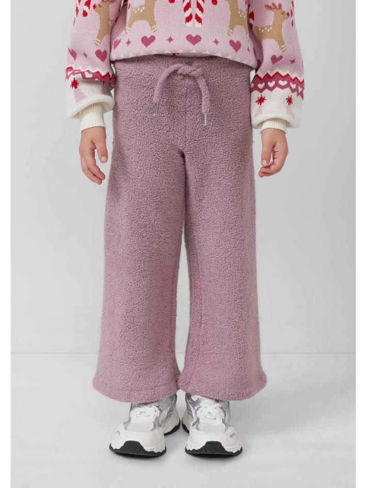Уютные трикотажные брюки из модной ткани букле с удобным эластичным поясом и широкими штанинами. Высококачественный полиамидный трикотаж и свободный крой обеспечивают максимальный комфорт. Благодаря едва заметной кулиске они станут стильным повседневным спутником в холодное время года.