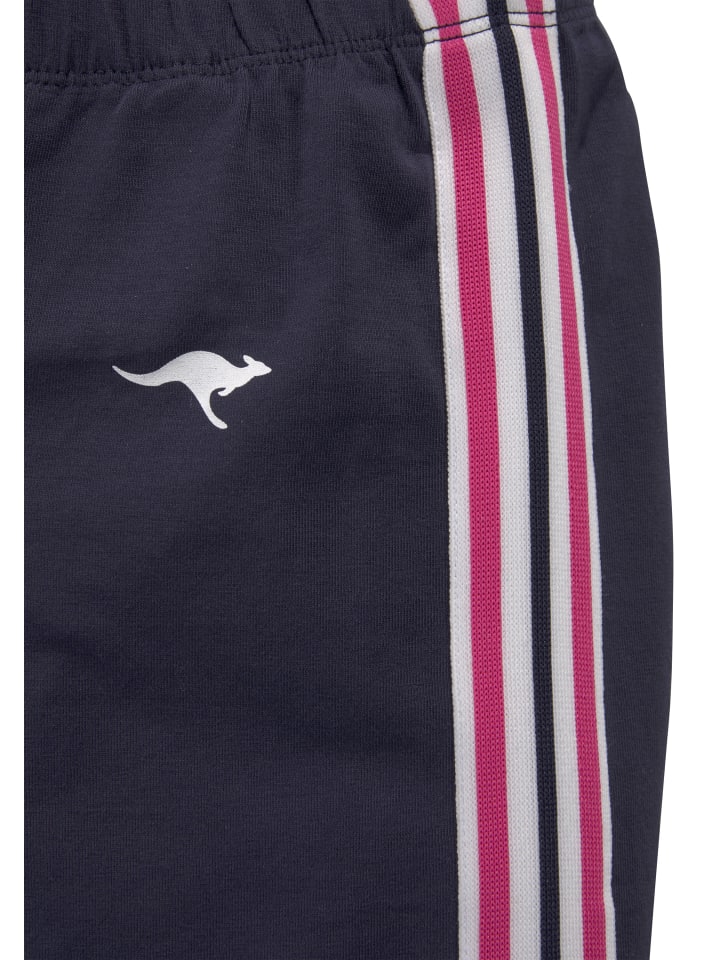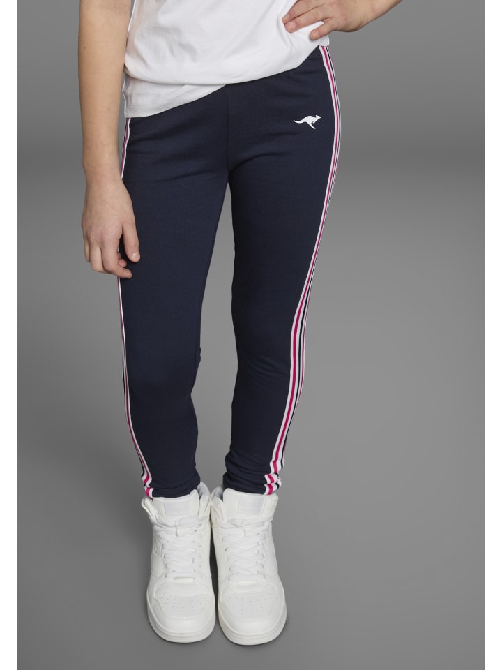 Леггинсы Kangaroos для девочек. По бокам полосатая репсовая лента. Небольшой принт с логотипом на поясе. Эластичный пояс. Идеальная посадка. Удобная трикотажная ткань.