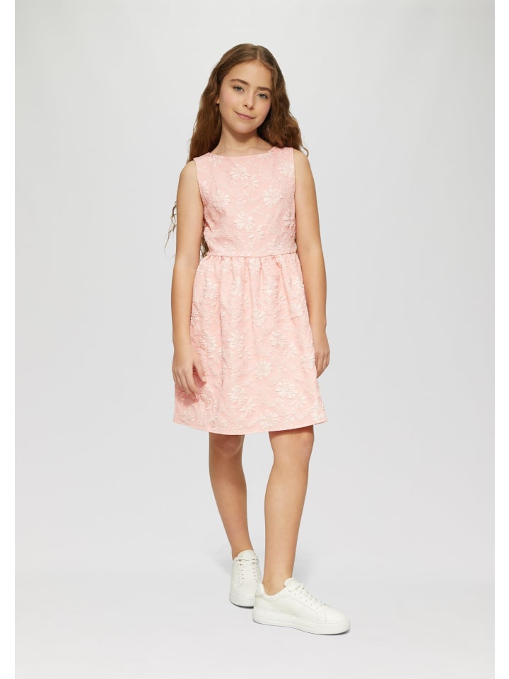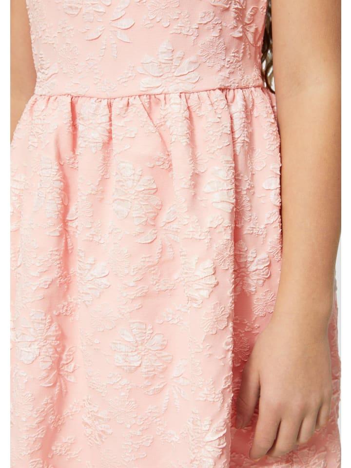 Нарядное жаккардовое платье для особых случаев! Это платье без рукавов с цветочным узором создает волшебный образ. Круглый вырез горловины и приталенный силуэт подойдут любой юной леди. Идеально подходит для семейных торжеств или вечеринок - ваша дочь будет в центре внимания.