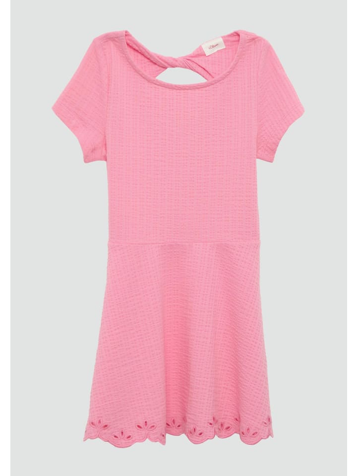 Это структурированное хлопковое платье с круглым вырезом, модным вырезом на спине и изящной вышивкой ажурными нитями. Короткая длина и прилегающий к телу силуэт создают летний образ. Идеально подходит для семейных прогулок или детских дней рождения!