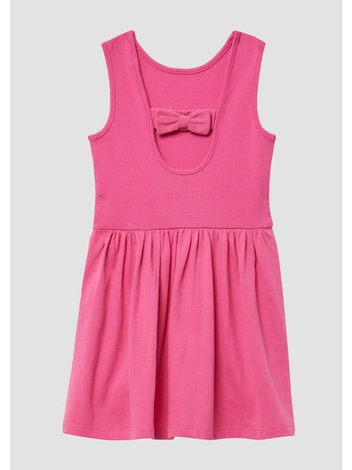 Очаровательное платье для маленьких принцесс! Это короткое платье из смесовой хлопковой ткани с круглым вырезом и широкими бретелями обеспечивает комфорт и свободу движений. Изысканные детали, такие как бант, сборка и вырез на спине, добавляют игривости. Идеально подходит для летних вечеринок или детских дней рождения - вашему ребенку понравится!